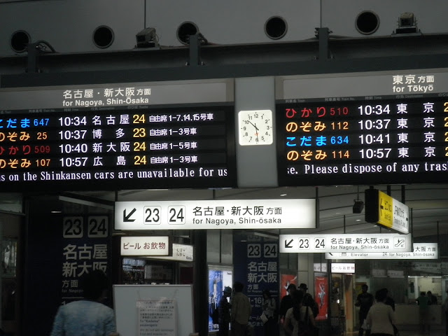 對照看板所顯示的車班和月台,然後順著指標走,就可以到達所要搭乘的新幹線月台。我們要到靜岡,所以是往名古屋新大阪方向,在23~24號月台。新幹線的指標很清楚,不用擔心會迷路。