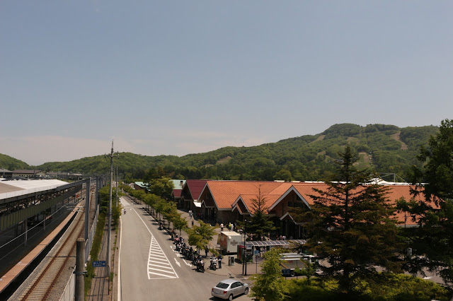 輕井澤不大,大約就像台灣一個山中的小鎮吧,周圍有矮山有樹林。
